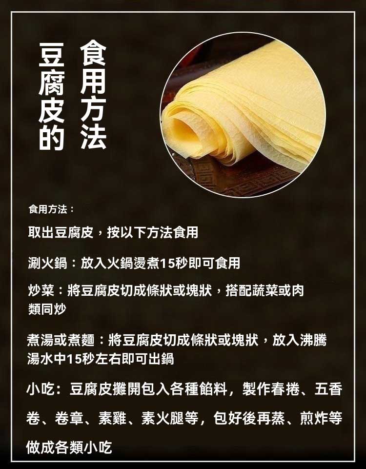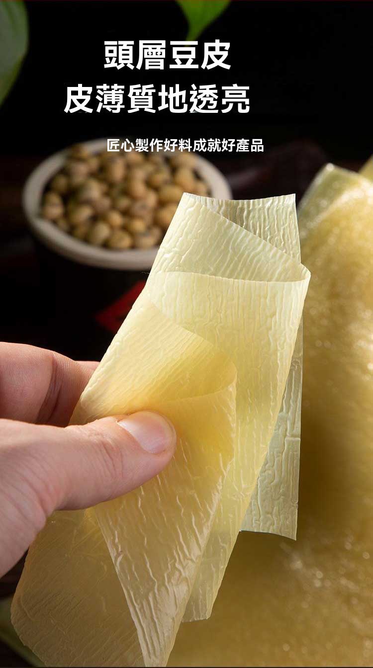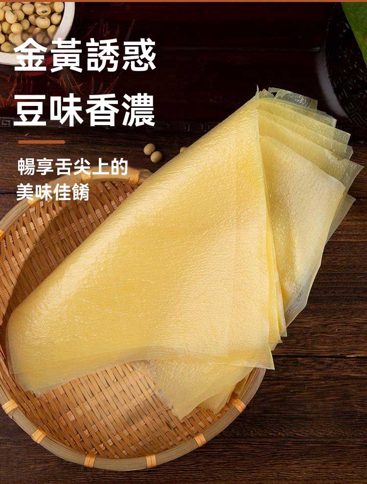 7分鐘前【正宗頭層手工蟬翼豆腐皮】採用高山有機大豆,手工製作的頭層豆皮,薄如蟬翼,做春卷,響鈴,涼拌菜等,多種吃法,煮湯,炒菜都可以。 - 【原漿製作 不香包退】4入組(約200張)NT$1398