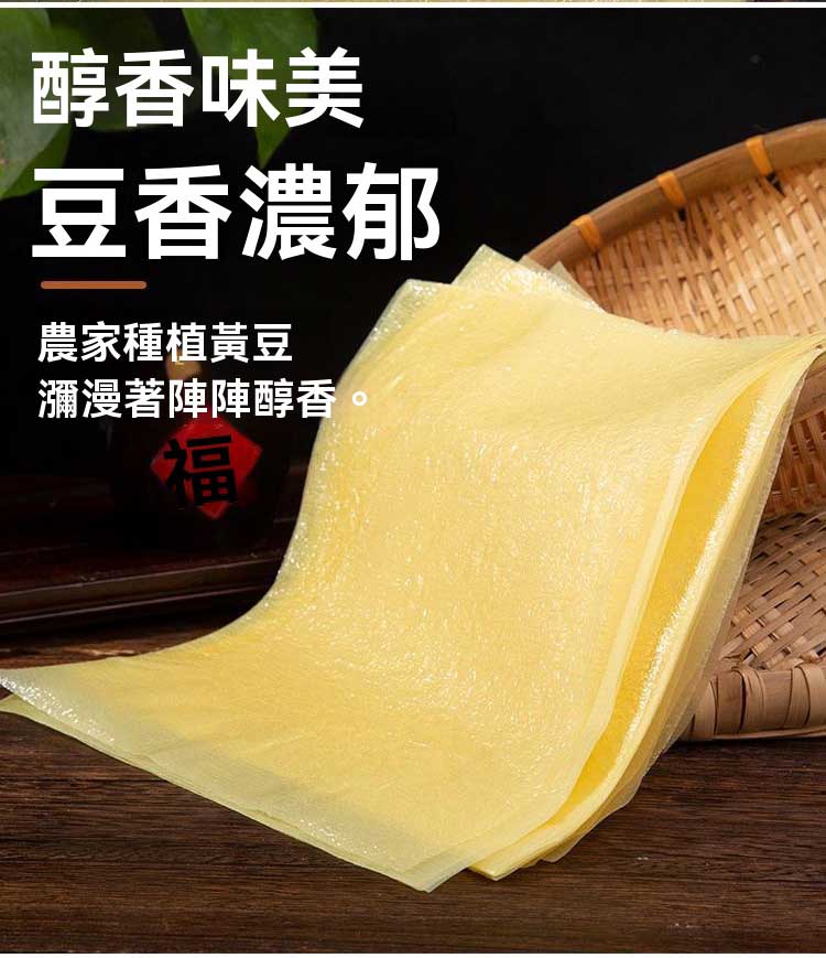 2分鐘前【正宗頭層手工蟬翼豆腐皮】採用高山有機大豆,手工製作的頭層豆皮,薄如蟬翼,做春卷,響鈴,涼拌菜等,多種吃法,煮湯,炒菜都可以。 - 【農家手工製作 嘗鮮價】2入組(約100張)NT$998
