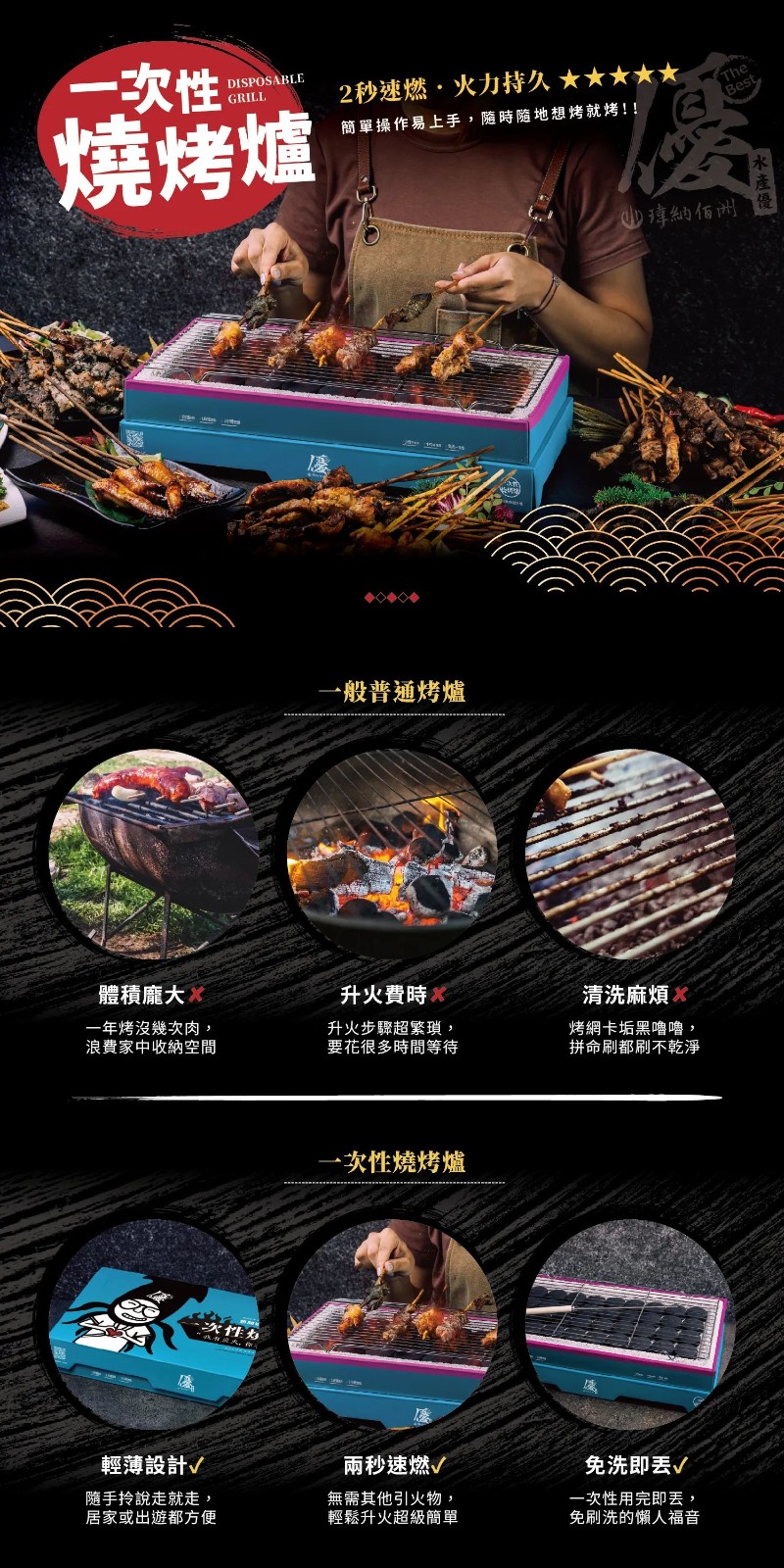 12分鐘前一次性燒烤爐 ~ 最方便的烤肉爐 想烤肉不用等太久 輕鬆烤肉就是這麼簡單 - 3入組 NT$1688